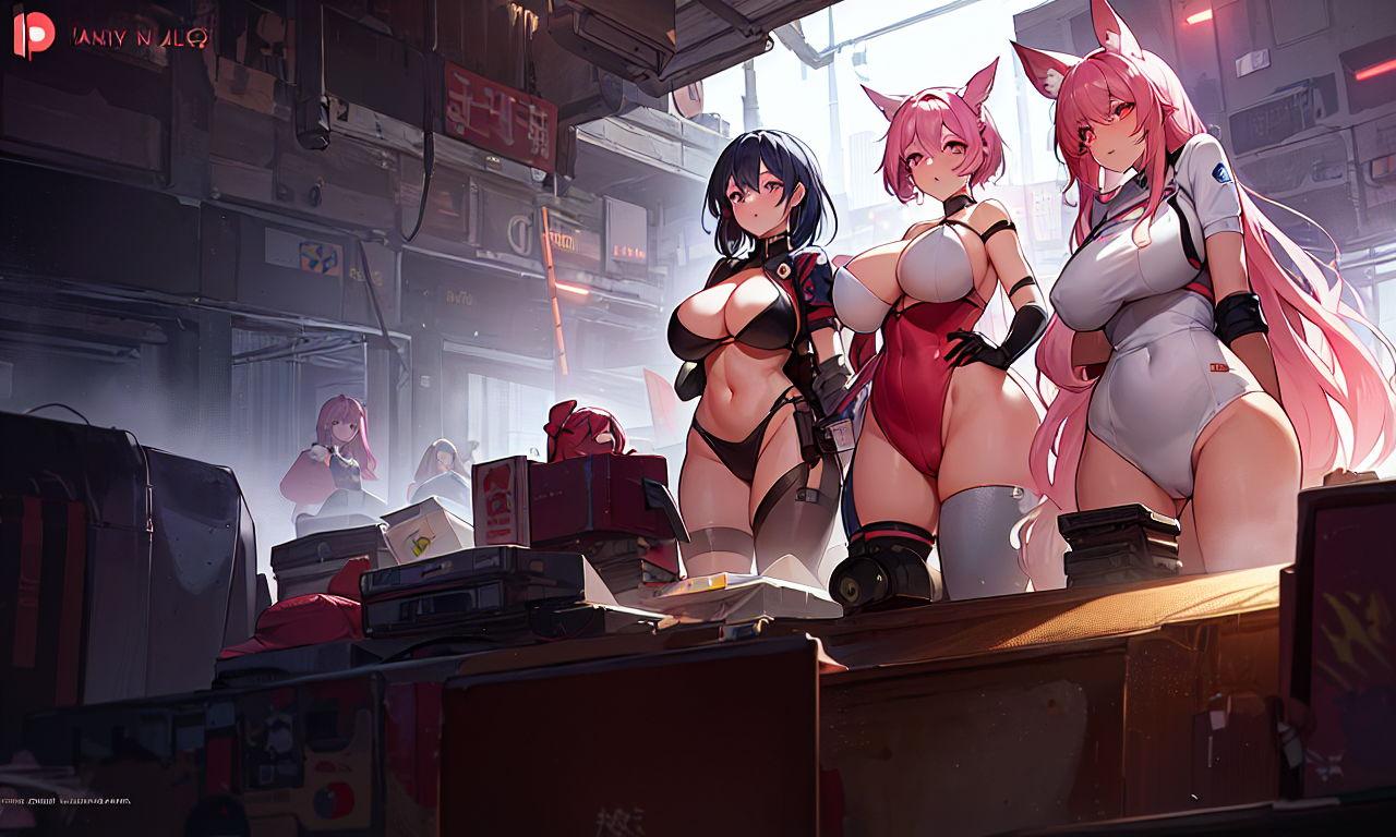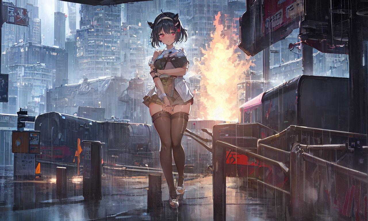 サイバーパンク、ハイレグ、どしゃ降り