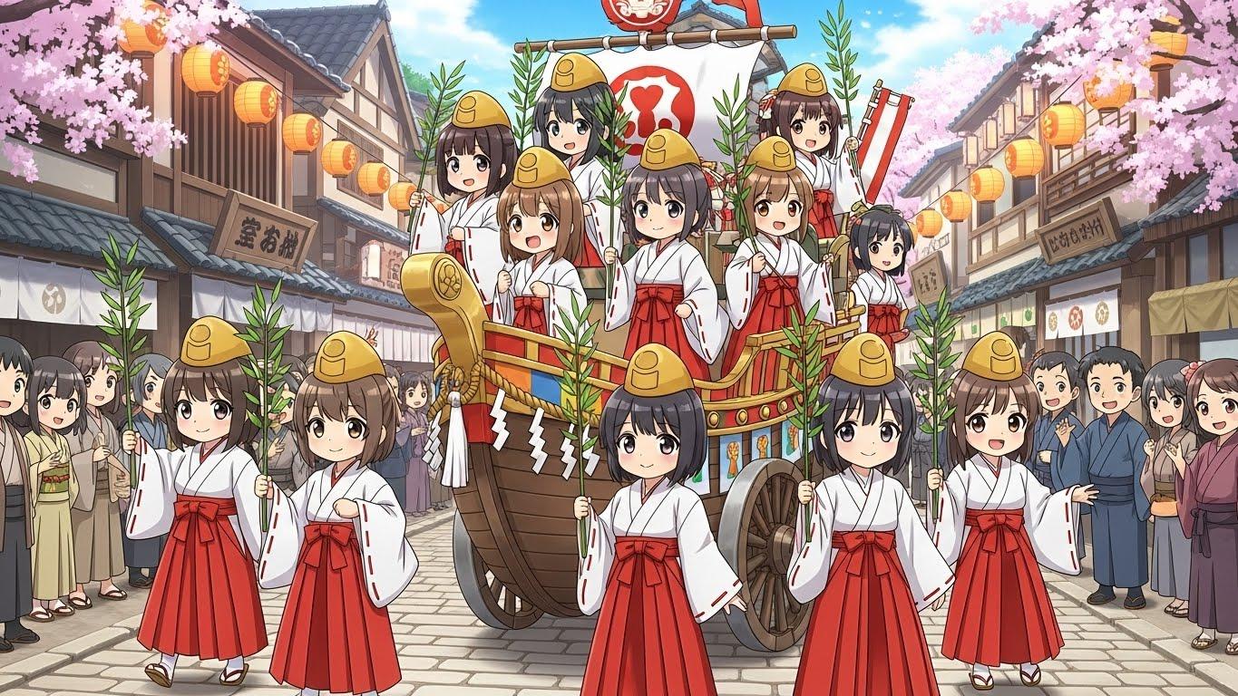 これは選出された福娘たちのお披露目パレードです。