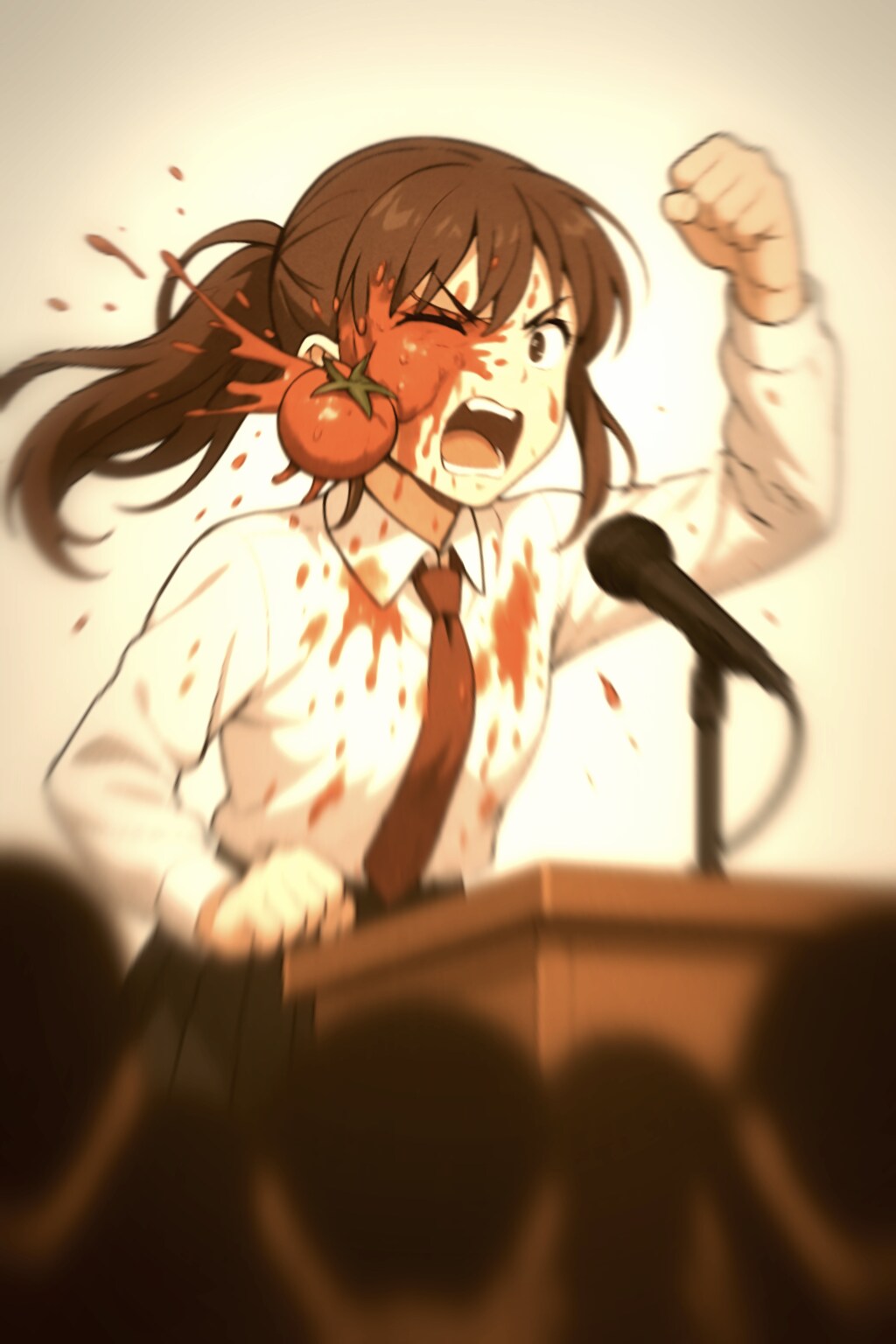# 腐ったトマトが演説台に立つ少女めがけて飛んでくる!