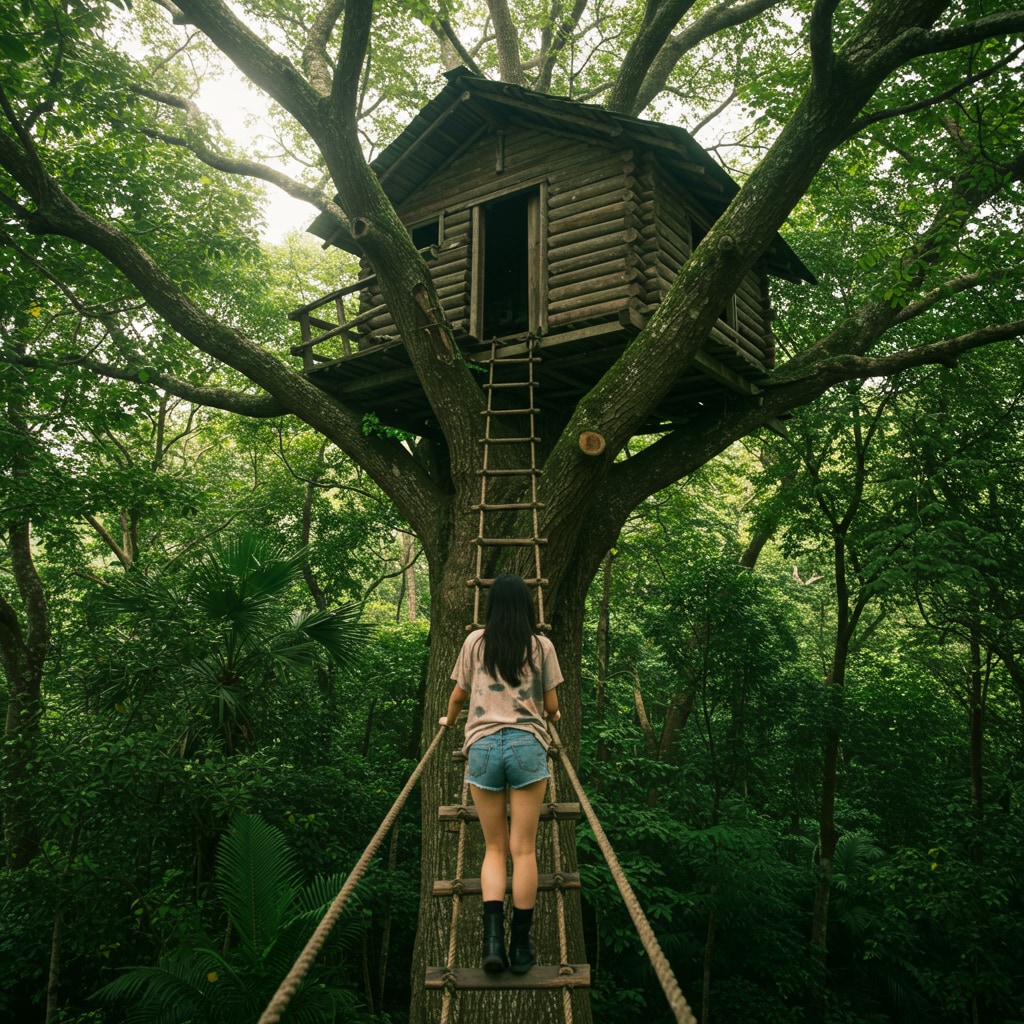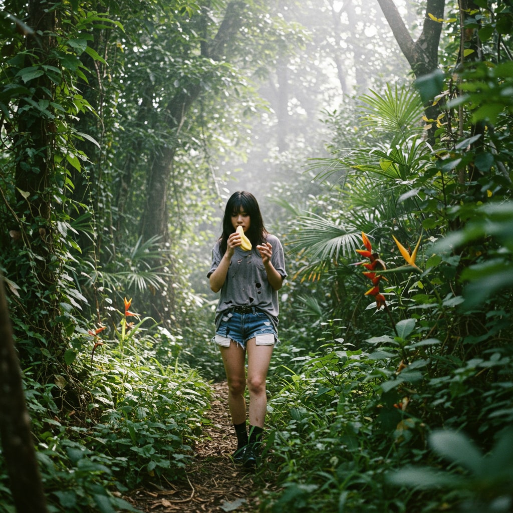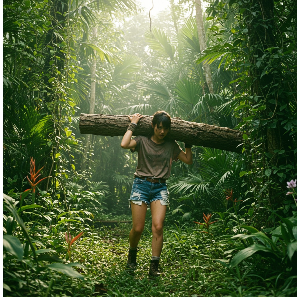 「一人の女子がジャングルの奥深くへ…彼女のサバイバルスキルは試される!未知の冒険が待ち受ける中、彼女は生き抜くことができるのか?これは強さと知恵の物語。必見のサバイバルストーリーをお見逃しなく!」