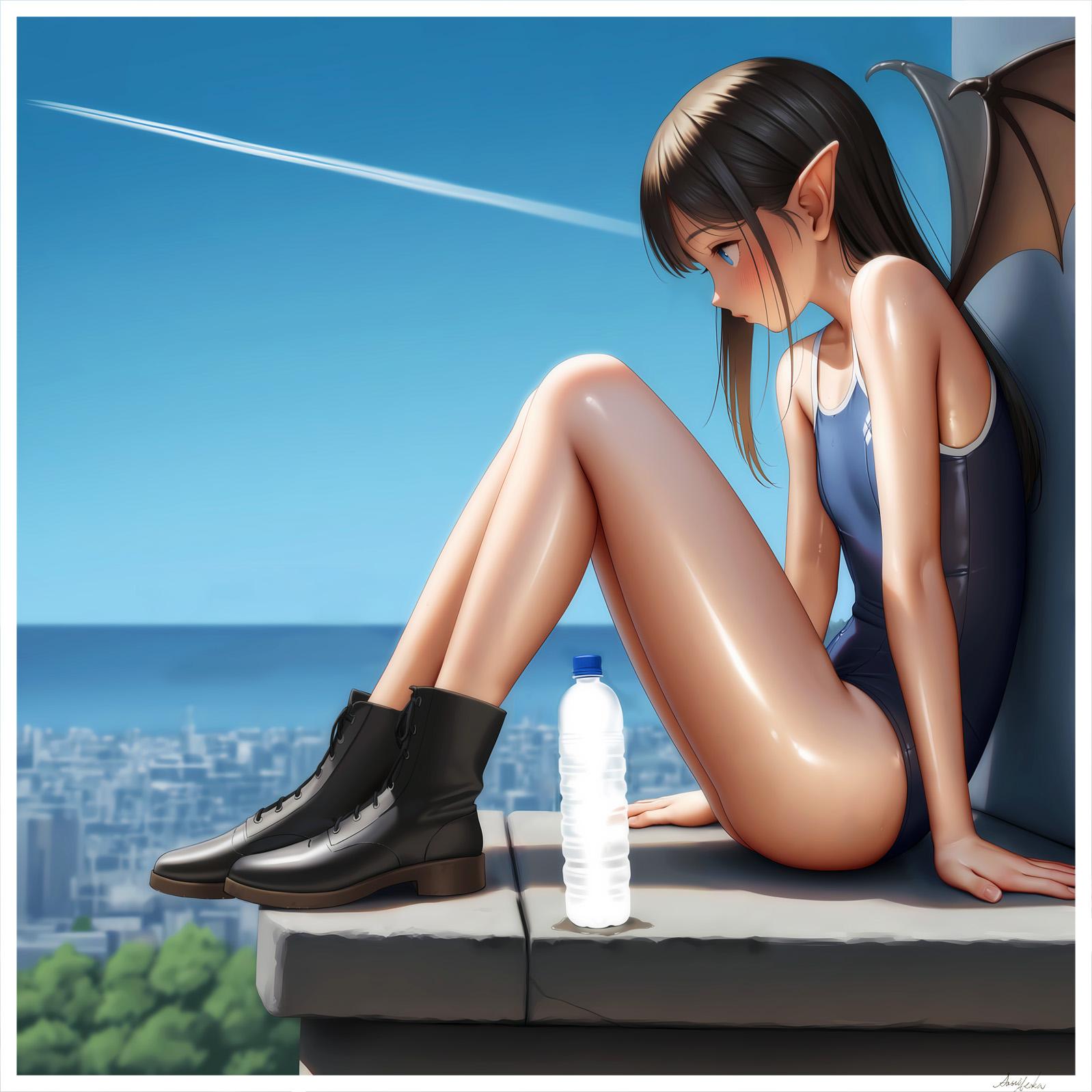 高いビルの上で四方を見張るお仕事をしているガーゴイルちゃん。
