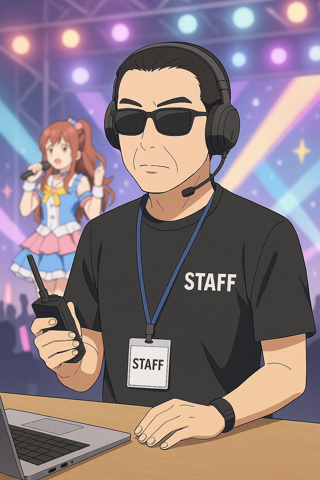 スタッフは演者より目立たないようにするため、サングラス、黒いスーツ、黒いネクタイをする事が義務付けられている。夏場はTシャツで作業する事もあり。見た目から通称、ハ○ターと言われている
