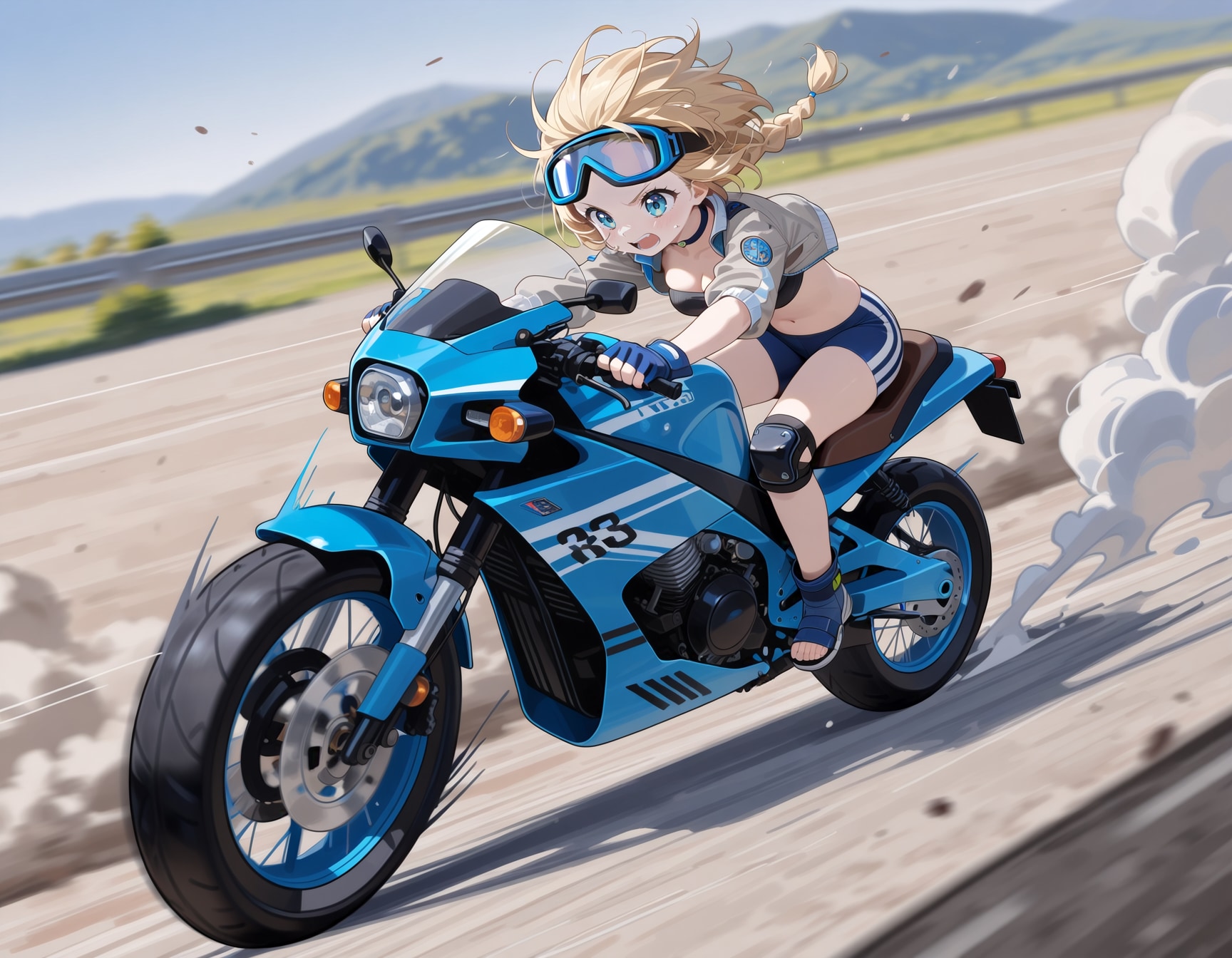 オフ車みたいなところ走ってますが、バイクはSSですね。YZF-R3ってプロンプトに入れたらSSになったので、息の長いモデルはAIもよく学習しているようです。