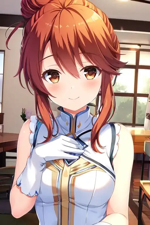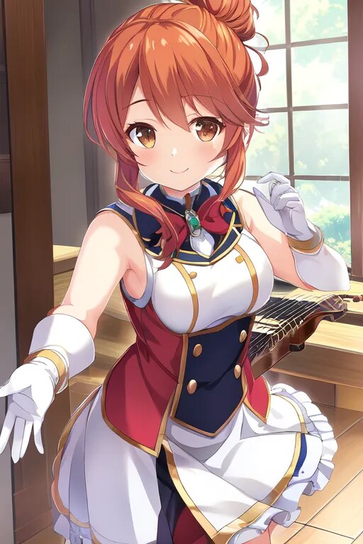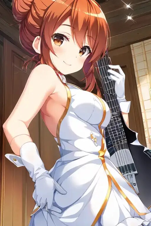 白い衣装は、white wearing a pretty,で白いグローブはwhite gloves,で原作イラストっぽくしてます